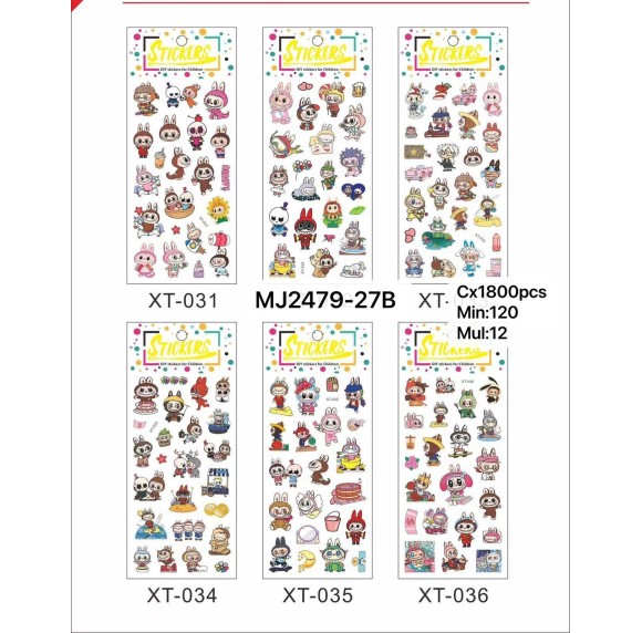 - REF:MJ2479-27B CARTELA ADESIVA DE PAPEL, COM DESENHOS CAPIVARA / LABUBU ----------------- CX:1800PÇS/SUB:120PÇS- MUL:12PÇS