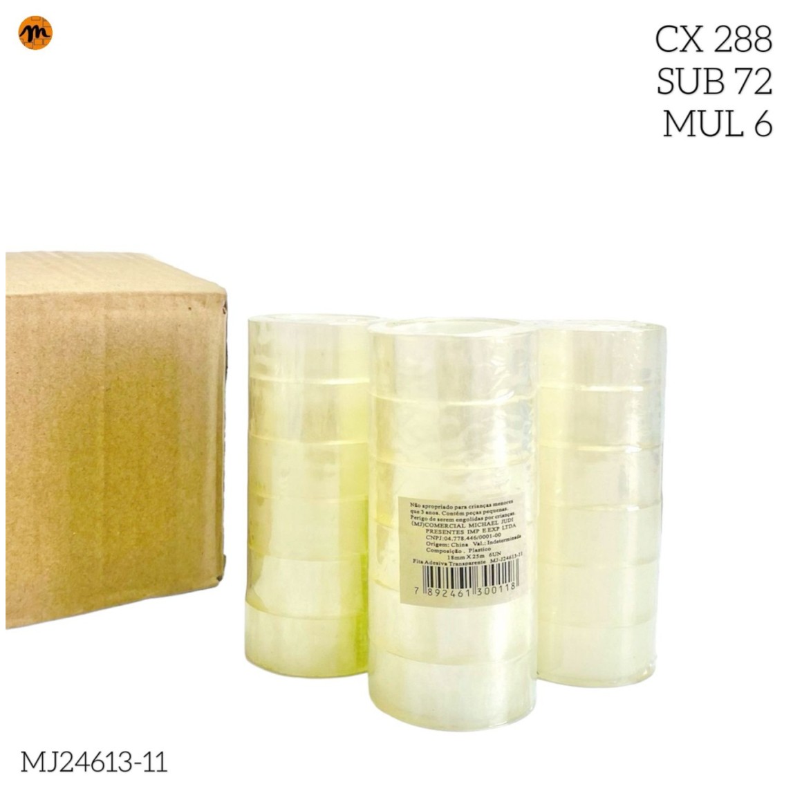 FITA ADESIVA DE POLIPROPILENO MJ-J24613-11 CX 288PÇS SUB72 MUL/12